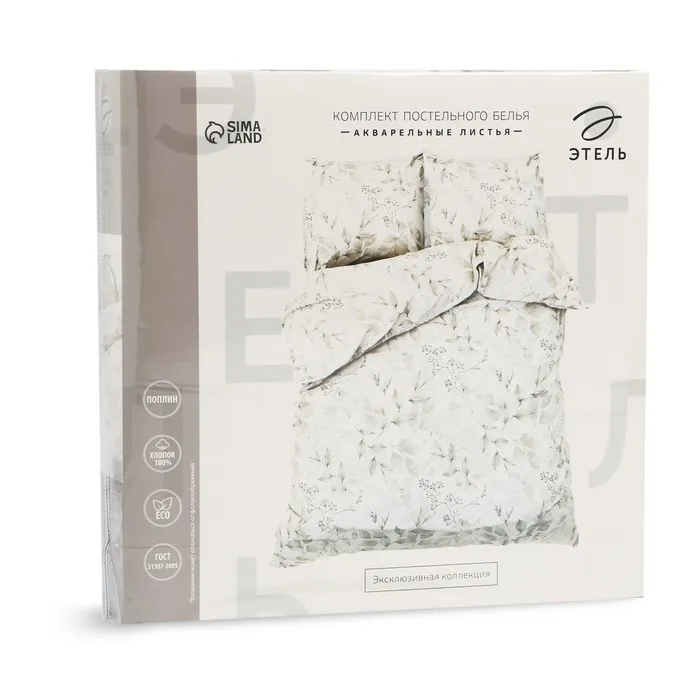 Постельное бельё Этель Евро «Акварельные листья» 200х215 см, 220х240 см, 70х70 см -2 шт, поплин 125 г/м2 — Характеристики