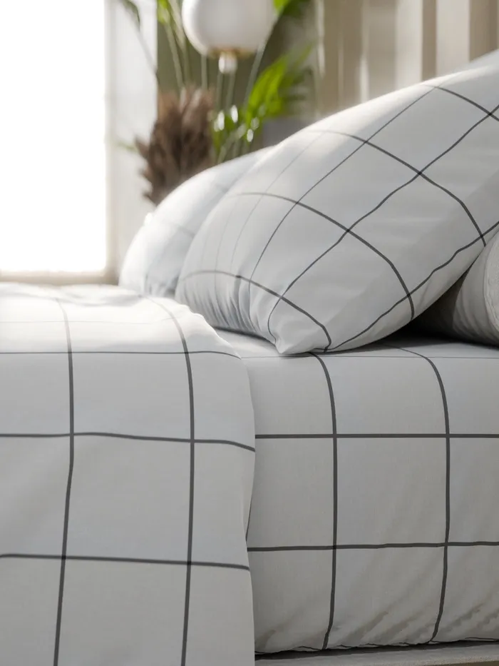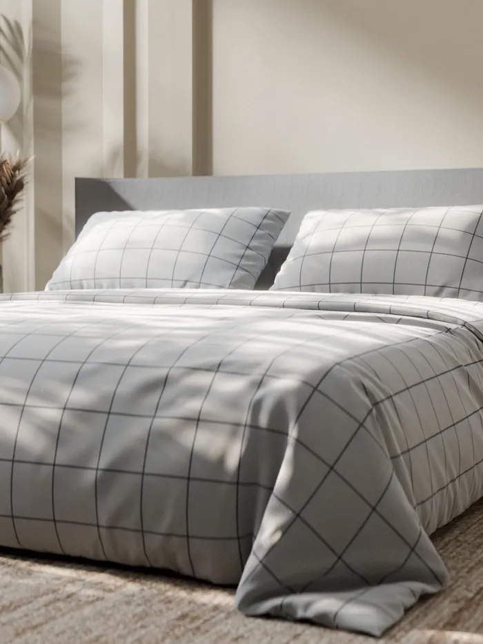 Постельное бельё Этель Евро «Клетка», белое, 200×215, 220×240, 50×70-2 штуки, бязь, 125 г/м² — Характеристики