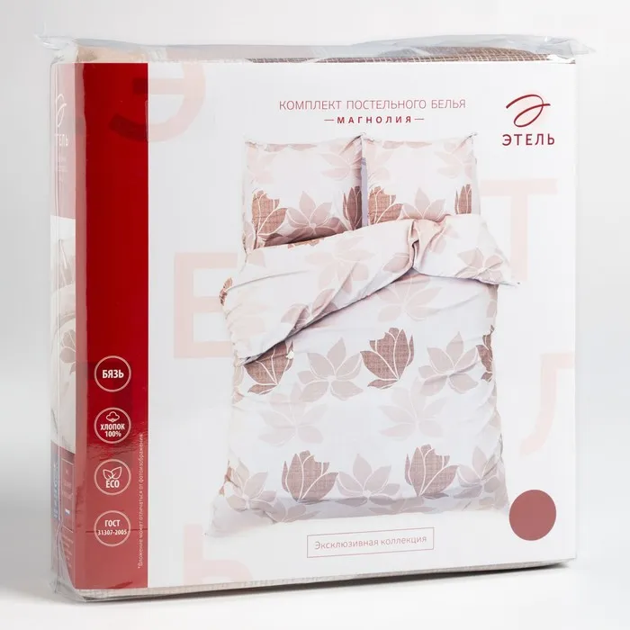 Постельное бельё "Этель" евро Магнолия 200 *217 см, 220*240 см, 70*70 см -2 шт, бязь — Характеристики