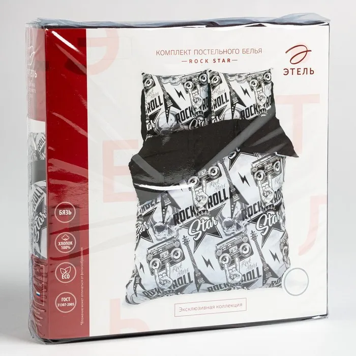 Постельное бельё «Этель» евро Rock star 200х217 см, 220х240 см, 70х70 см -2 шт, 100% хлопок, бязь 125 г/м2 — Характеристики