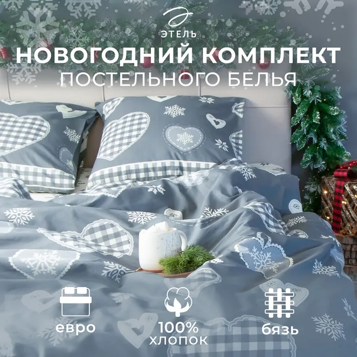 Постельное бельё "Этель" Евро Scandi 200х217 см, 220х240 см, 70х70 см - 2 штуки — Характеристики
