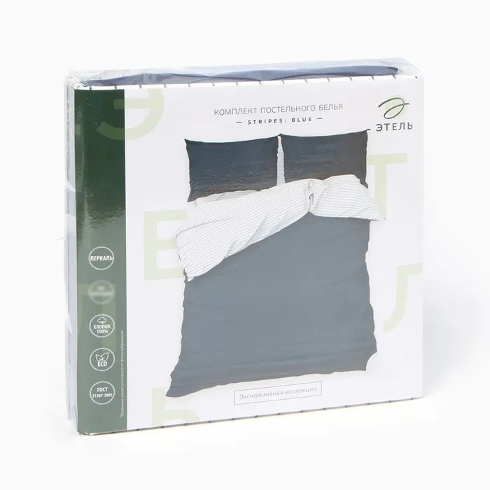 Постельное бельё Этель евро Stripes: blue, 200х215см, 214х240см, 50х70см-2 шт, перкаль,114 г/м2 — Характеристики