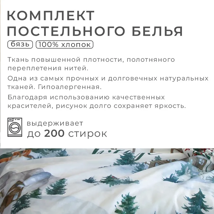 Постельное бельё "Этель" Евро Winter village 200*217 см, 220*240 см, 70*70 см - 2 шт, бязь 125гр/м2 — Характеристики