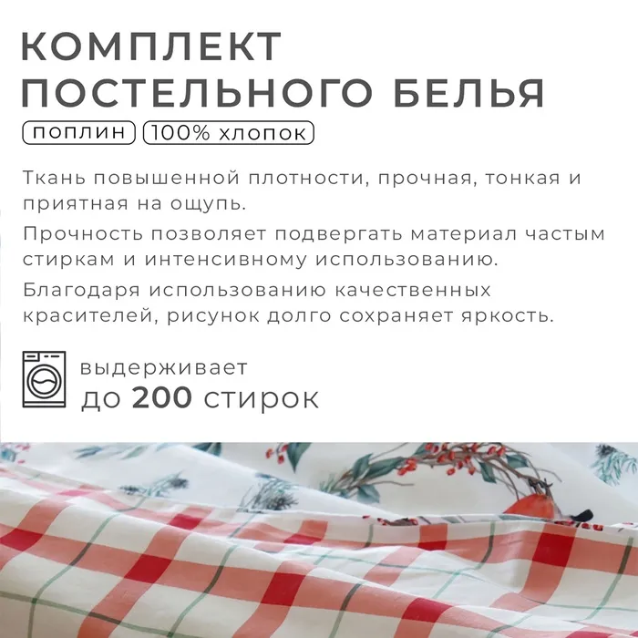 Постельное бельё "Этель" Снегири евро 200х217 см,220х240 см,70х70 см -2 шт,поплин 125 г/м2 — Характеристики