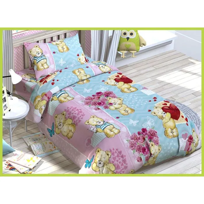Постельное бельё "Этелька" 1,5 сп., Плюшевые мишки 143х215 см, 150х214 см, 50х70 см -1 шт., 100% хлопок, бязь, 125 г/м2 — Характеристики