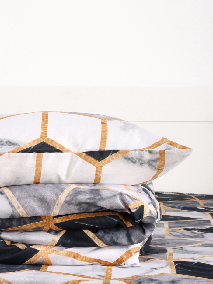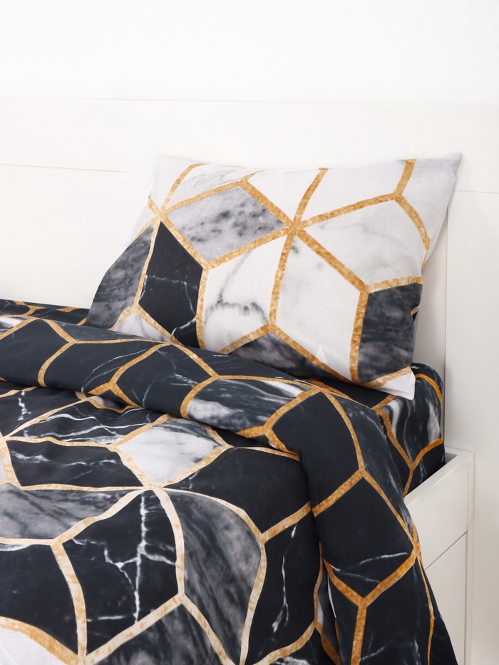 Евро комплект «Экономь и Я» из микрофибры отражает баланс между простотой и утончённостью. Чёрный и белый цвета формируют нейтральный фон, где мраморная тематика добавляет спокойный ритм, подобный волнам, успокаивающим разум. Микрофибра предлагает ощущение лёгкости, сравнимое с мягким ветром, но с прочностью, устойчивой к повседневным стиркам. Этот набор подходит для просторных кроватей евро-размера, где пространство для сна становится личным убежищем. Простыня ложится без складок, наволочки сохраняют свежесть, а пододеяльник остаётся на месте, позволяя сосредоточиться на сне. Рекомендации по уходу обеспечивают долговечность, освобождая время для важных вещей — семьи, работы или хобби.