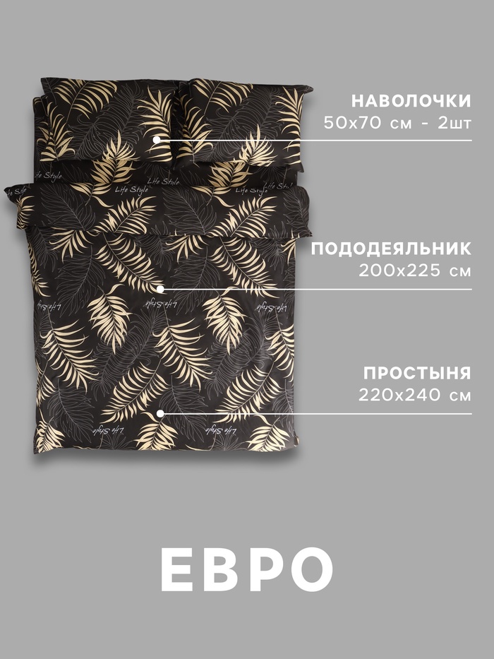 - Комплект включает пододеяльник евро размера, простыню и две наволочки для полного набора.