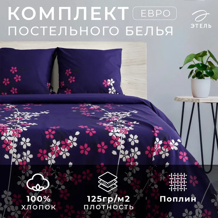 Постельное бельё евро «Этель. Черничные ночи», поплин — Характеристики