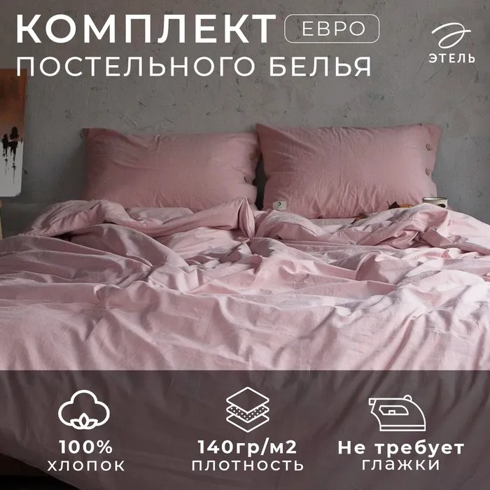 Постельное бельё евро «Этель», жатый хлопок, пудра — Характеристики