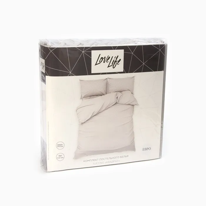 Постельное бельё Евро «Тафтинг квадрат» 200×217 см,230×240 см,50×70 см-2 шт., серое, 110 г/м² — Характеристики