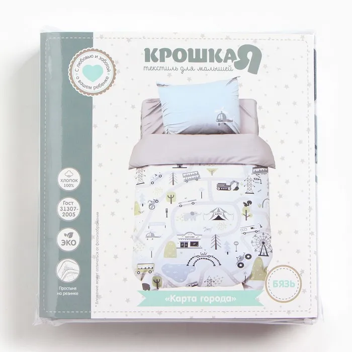 Постельное бельё Крошка Я «Карта города», 112х143 см, 60х120+20 см, 40х60 см, 100% хлопок — Характеристики