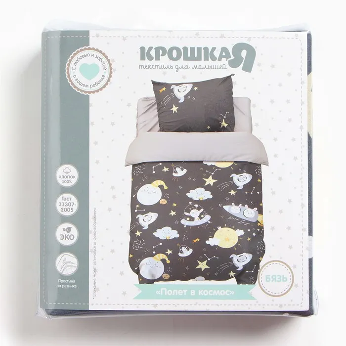 Постельное бельё Крошка Я «Полет в космос», 112х143 см, 60х120+20 см, 40х60 см, 100% хлопок — Характеристики