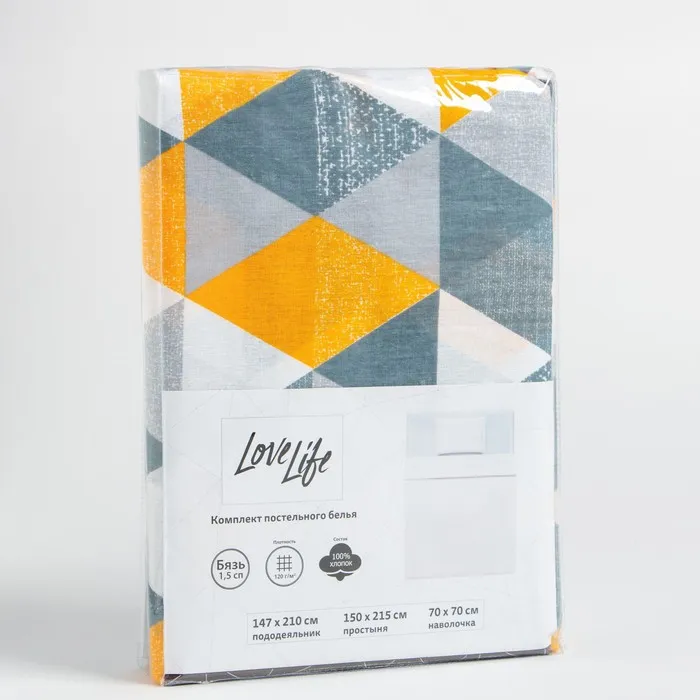Постельное бельё LoveLife 1.5 сп "Геометрия" 147х210,150х215,70х70-1 шт,100% хлопок, бязь 120г/м2 — Характеристики
