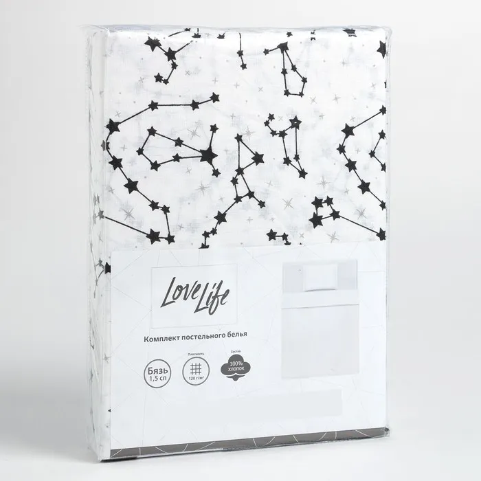 Постельное бельё "LoveLife" 1.5 сп Созвездие 147*210,150*215,50*70-1 шт,100% хлопок,бязь 120г/м2 — Характеристики