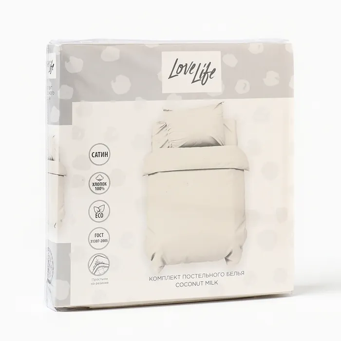 Постельное бельё LoveLife Coconut milk 112х143 см, 60х120+20 см, 40х60 см, хлопок, сатин, 125г/м² — Характеристики