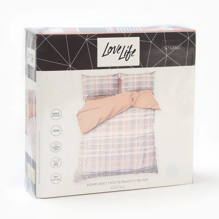 Постельное бельё LoveLife дуэт "Клетка" 143х215см-2шт, 225х240см,50х70см-2шт хлопок, сатин 125г/м — Характеристики