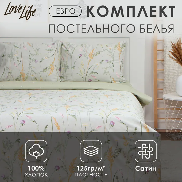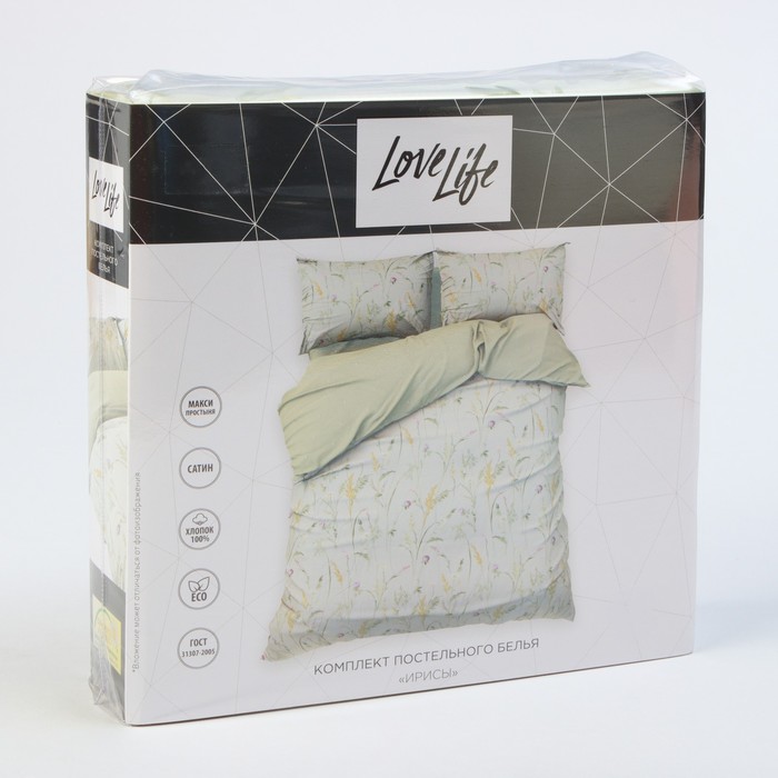 Постельное бельё LoveLife евро «Ирисы», 200х217см, 225х240см, 50х70см-2шт, 100%хлопок, сатин, 125г/м² — Характеристики