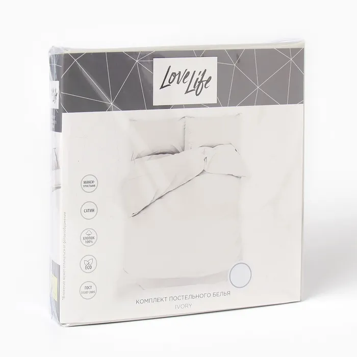 Постельное бельё LoveLife евро Ivory 200х217см, 225х240см, 50х70см-2шт, 100%хлопок, сатин, 125г/м² — Характеристики