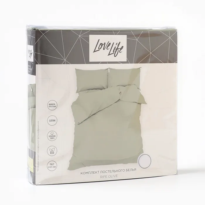 Постельное бельё LoveLife евро Ripe olive 200х217см, 225х240см, 50х70см-2шт, 100%хлопок, сатин, 125г/м² — Характеристики