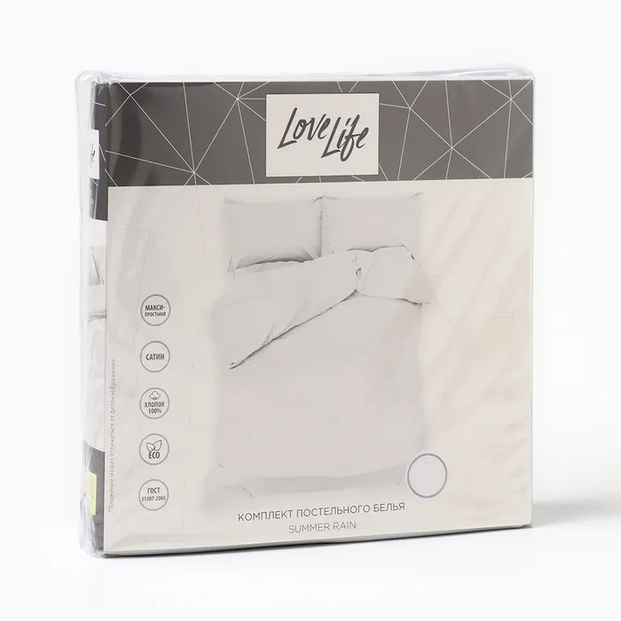 Постельное бельё LoveLife евро Summer rain 200х217см, 225х240см, 50х70см-2шт, 100%хлопок, сатин, 125г/м² — Характеристики