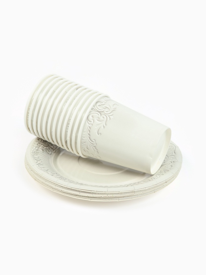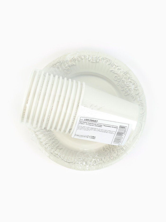 Посуда бумажная одноразовая «Керамика» белая, на 12 персон — Характеристики