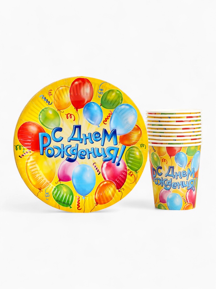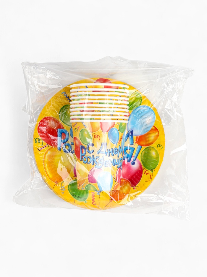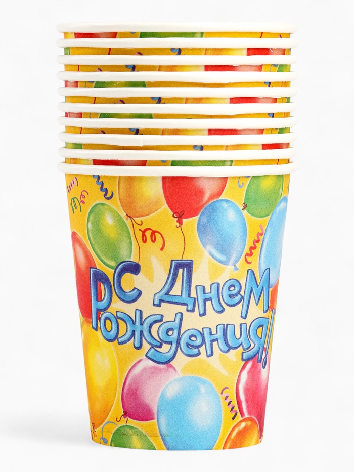 Посуда бумажная одноразовая «С днем рождения», 10 стаканов, 10 тарелок — Характеристики