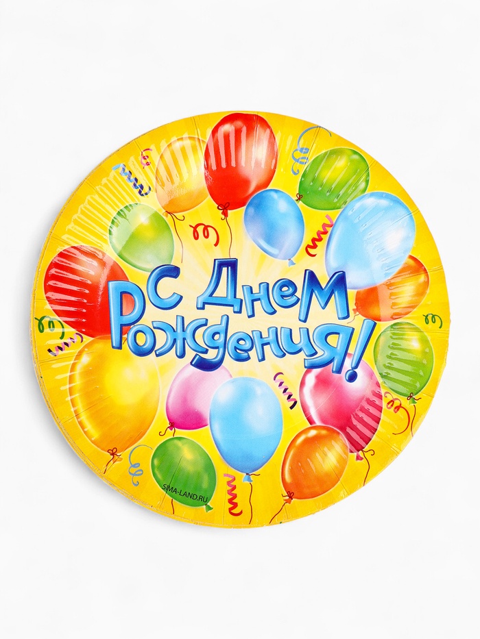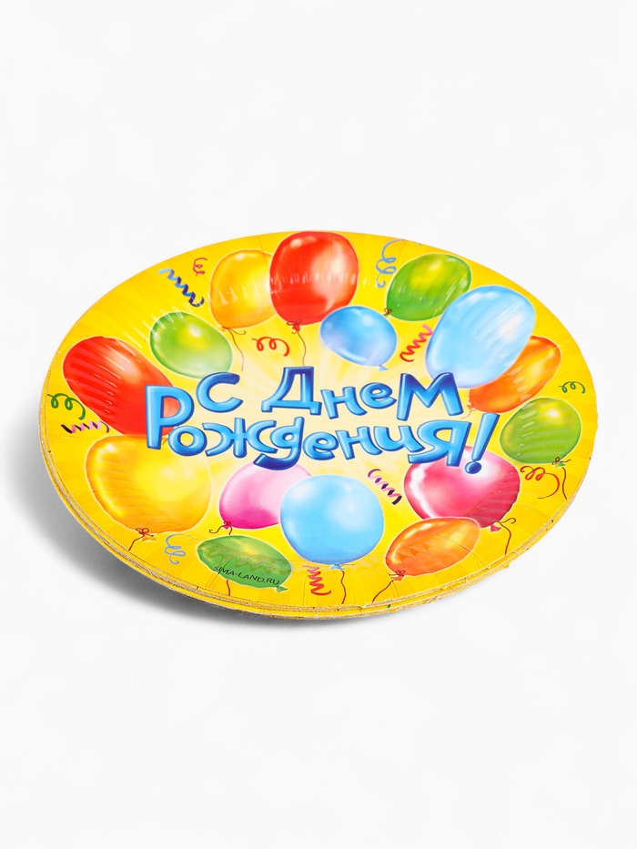 Тарелка одноразовая бумажная «С днем рождения», набор 6 шт., d=18 см