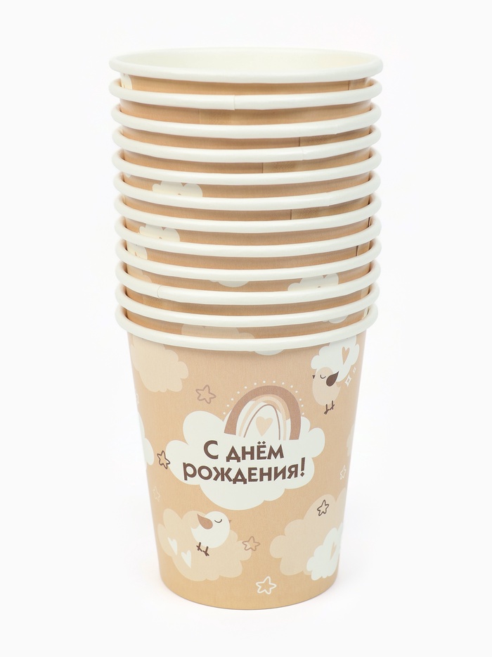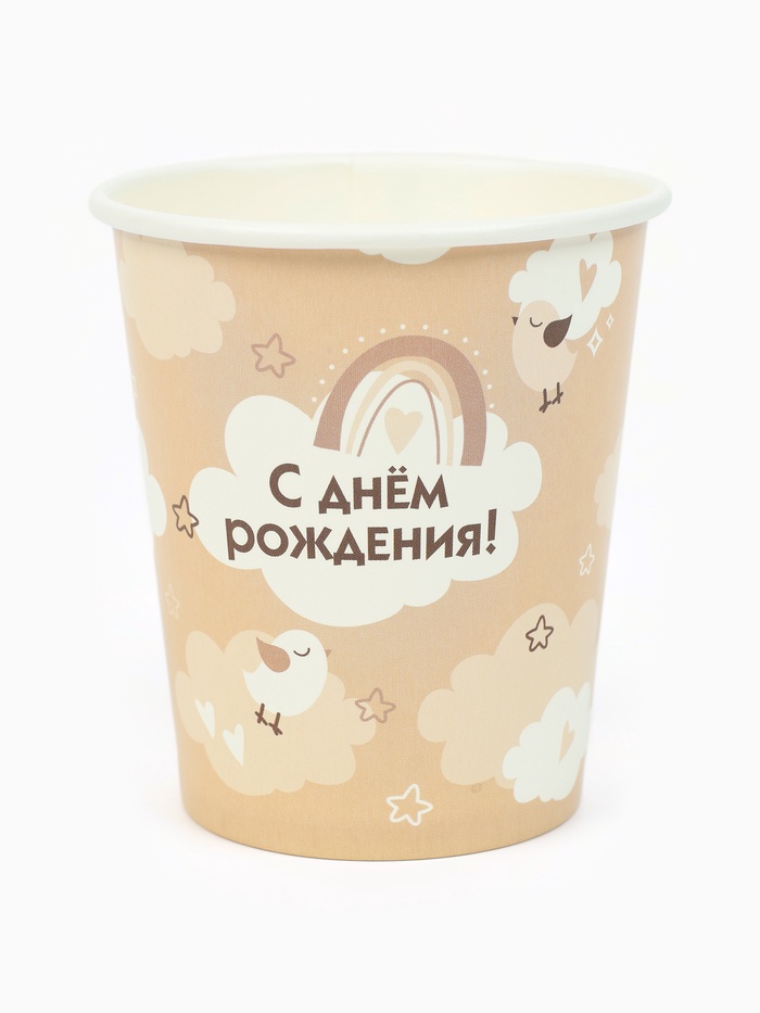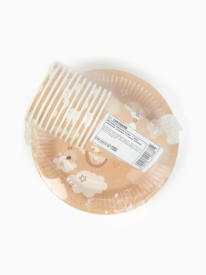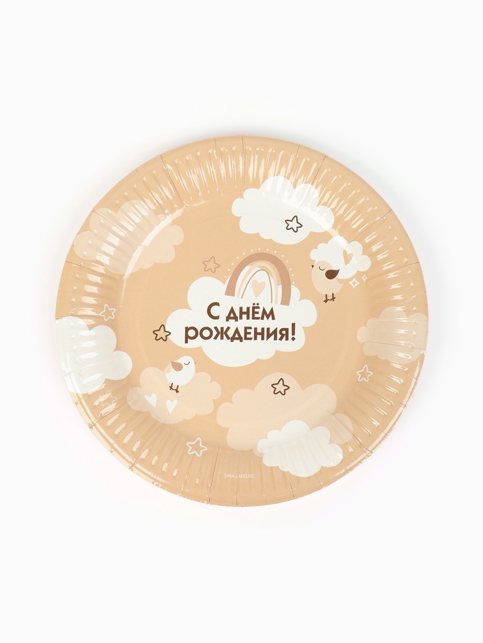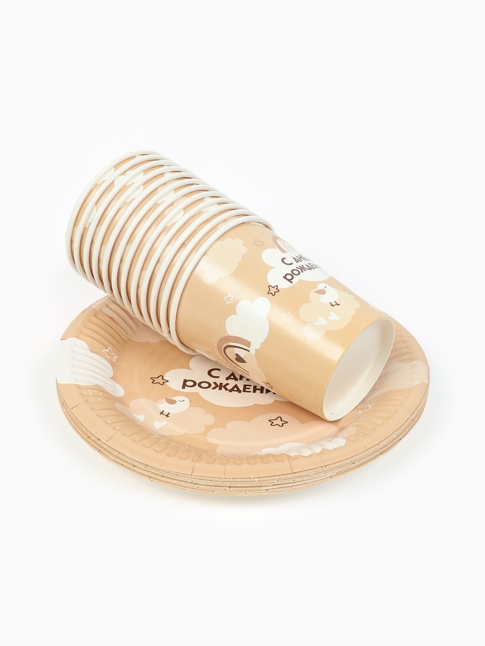 Посуда бумажная одноразовая «С Днём рождения», бежевая, на 12 персон — Характеристики