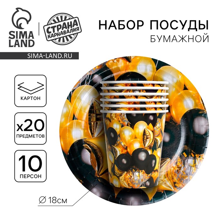 Посуда одноразовая бумажная «Чёрное золото», 10 стаканов, 10 тарелок