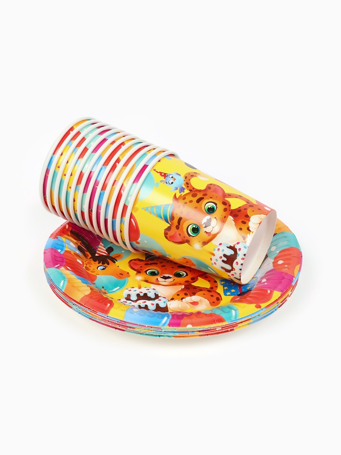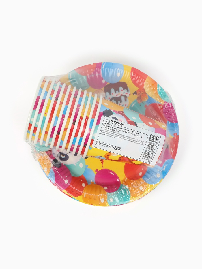 Посуда бумажная одноразовая «С Днём рождения», на 12 персон — Характеристики