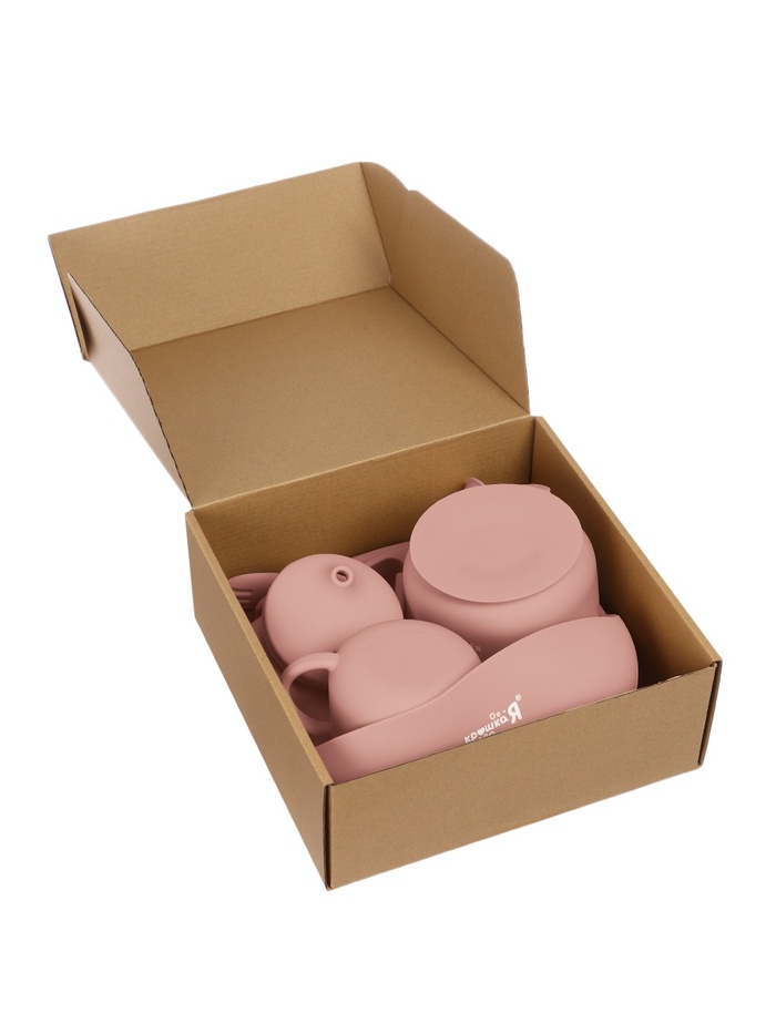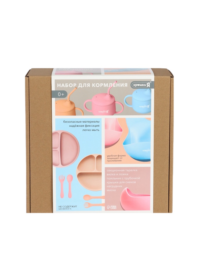 Посуда детская силиконовая, 7 предметов, розовый, Крошка Я — Характеристики