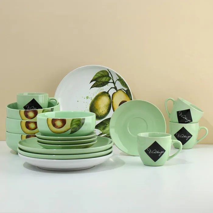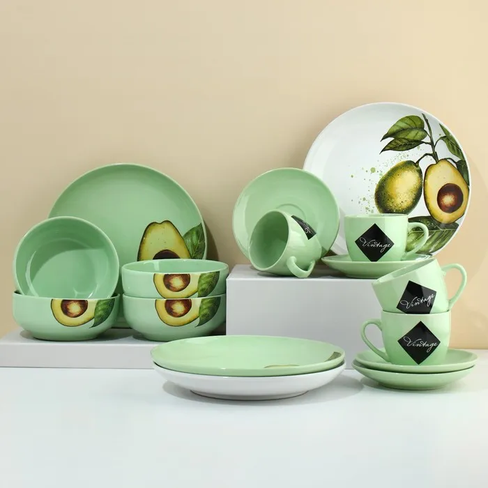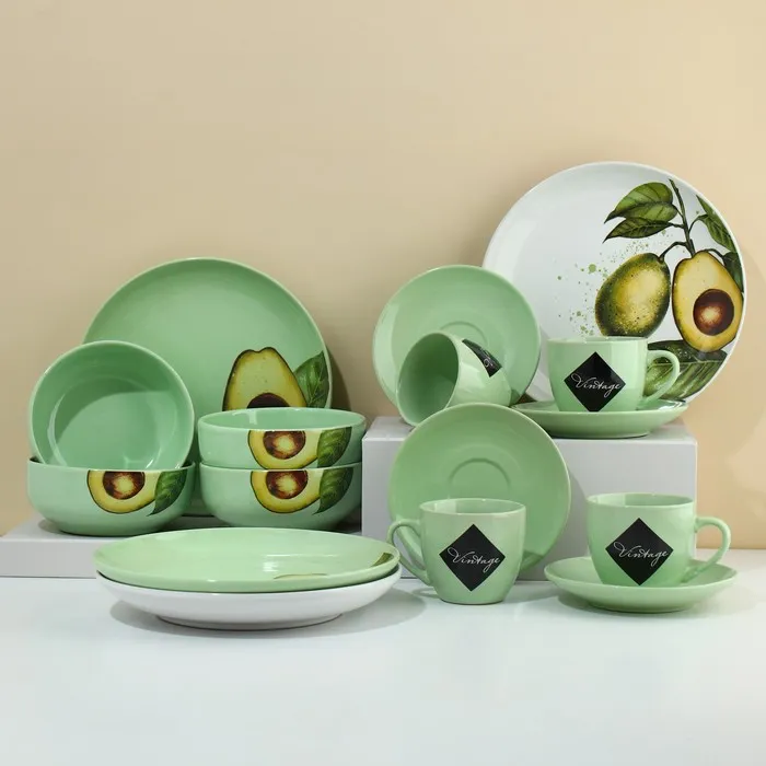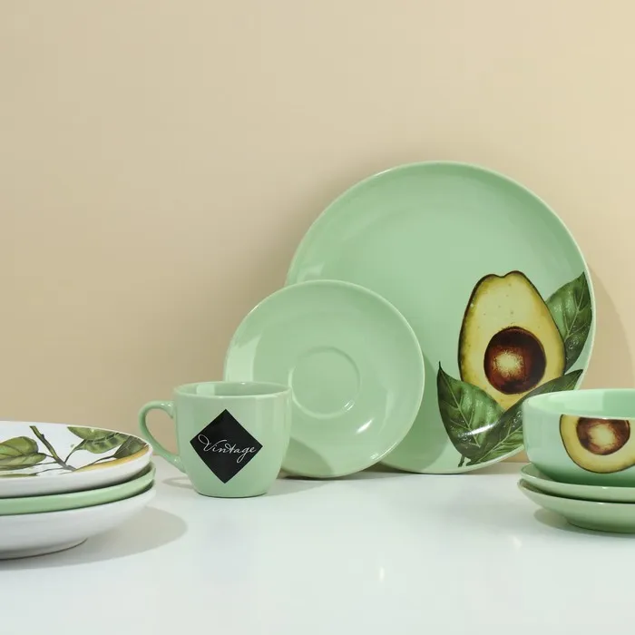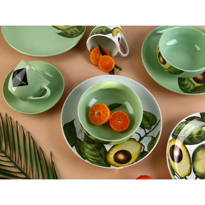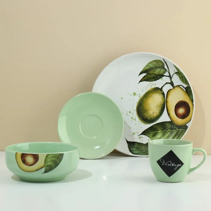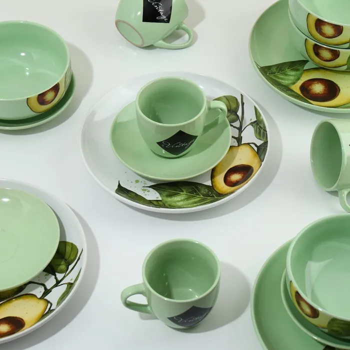Посуда из керамики «Авокадо»: 4 тарелки, 4 миски, 4 кружки, 4 блюдца — Характеристики