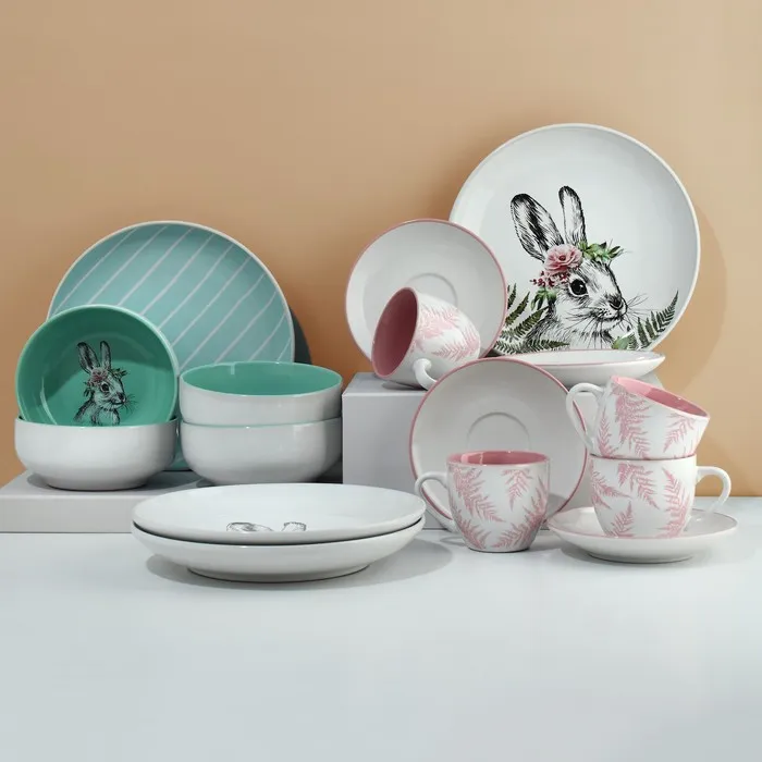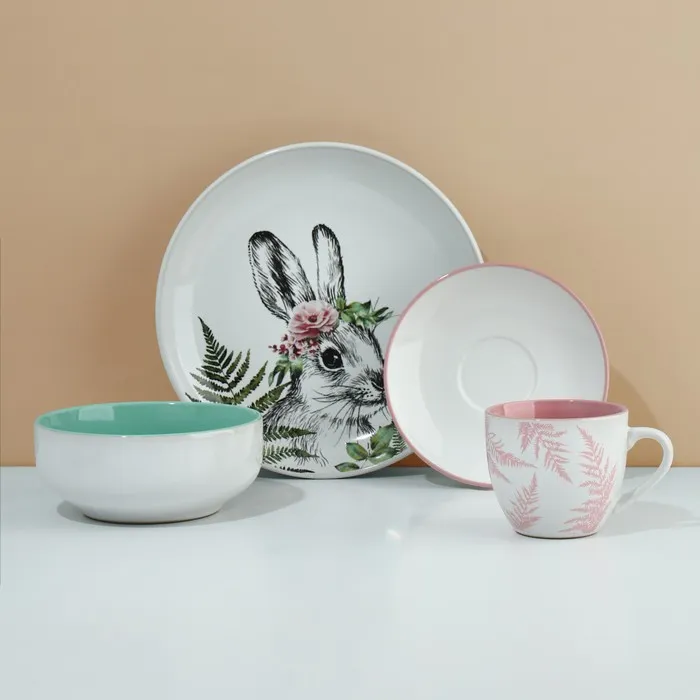 Посуда из керамики «Пасха. Лесные персонажи»: 4 тарелки, 4 миски, 4 кружки, 4 блюдца — Характеристики
