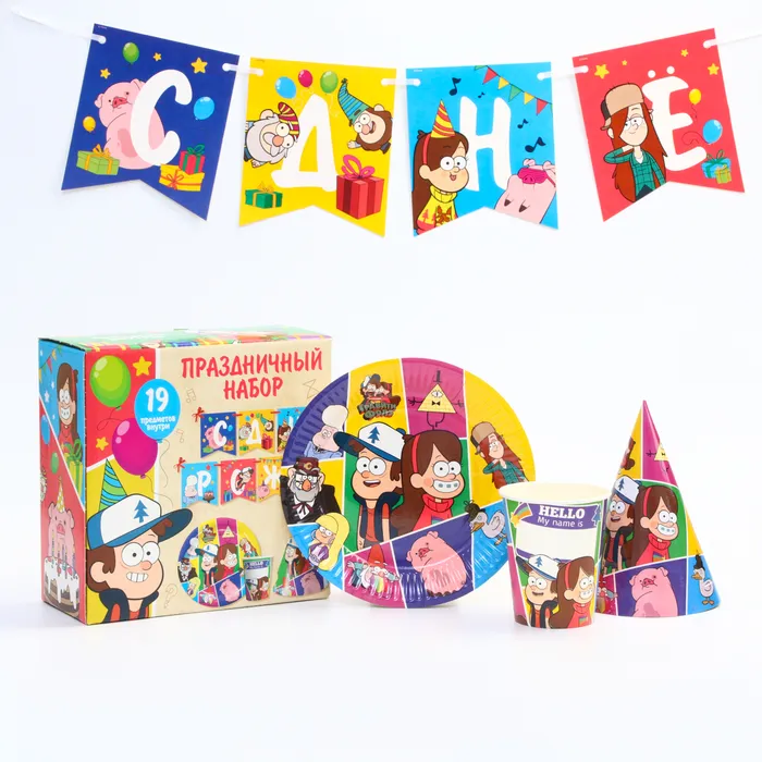 Посуда одноразовая бумажная для праздника «С днем рождения!», на 6 персон, 19 предметов, Гравити Фолз