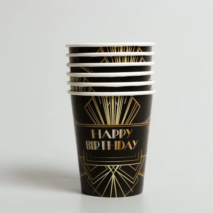 Посуда одноразовая бумажная Happy party, 6 тарелок, 6 стаканов, 1 гирлянда — Характеристики