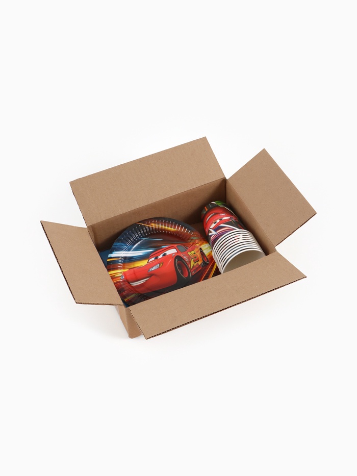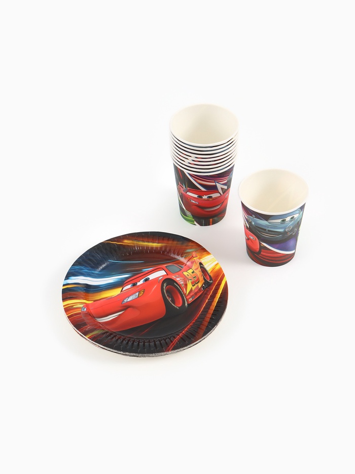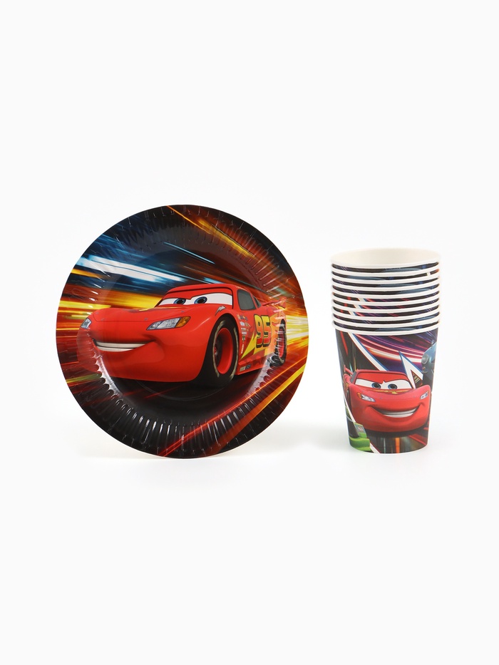 Одноразовая бумажная посуда на 10 персон, «Тачки» — яркий и атмосферный комплект для оформления детского праздника в стиле культового мультфильма! В набор входят: тарелки, стаканы и скатерть, выполненные из картона с печатью: на изделиях — Молния Маккуин, Мэтр, Салли, Флорида и другие герои в динамичных гоночных сценах, на фоне трасс. Подходят для прохладных и тёплых блюд и напитков, удобны в использовании и легко утилизируются.