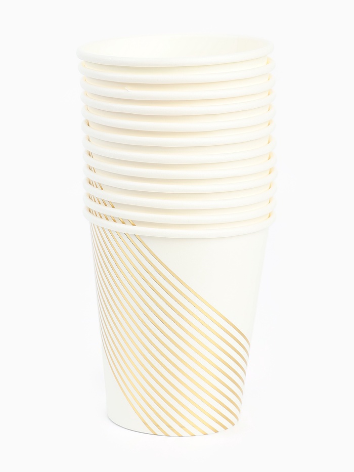 Посуда одноразовая бумажная на 12 персон, 24 предмета, бело-золотой цвет — Характеристики