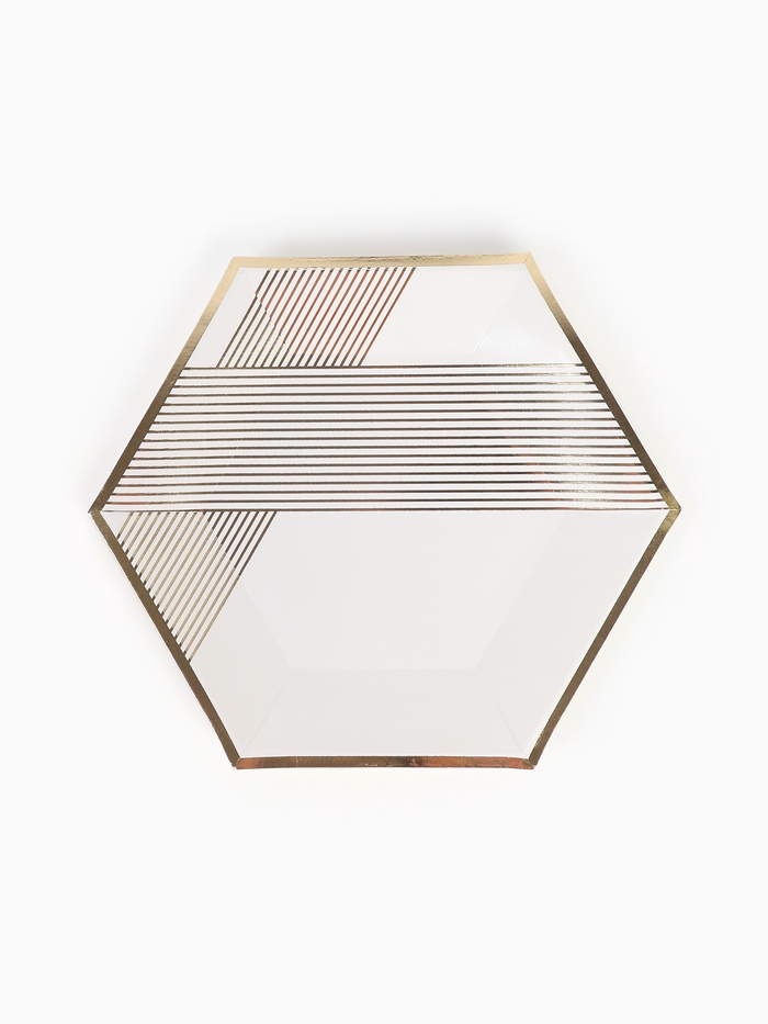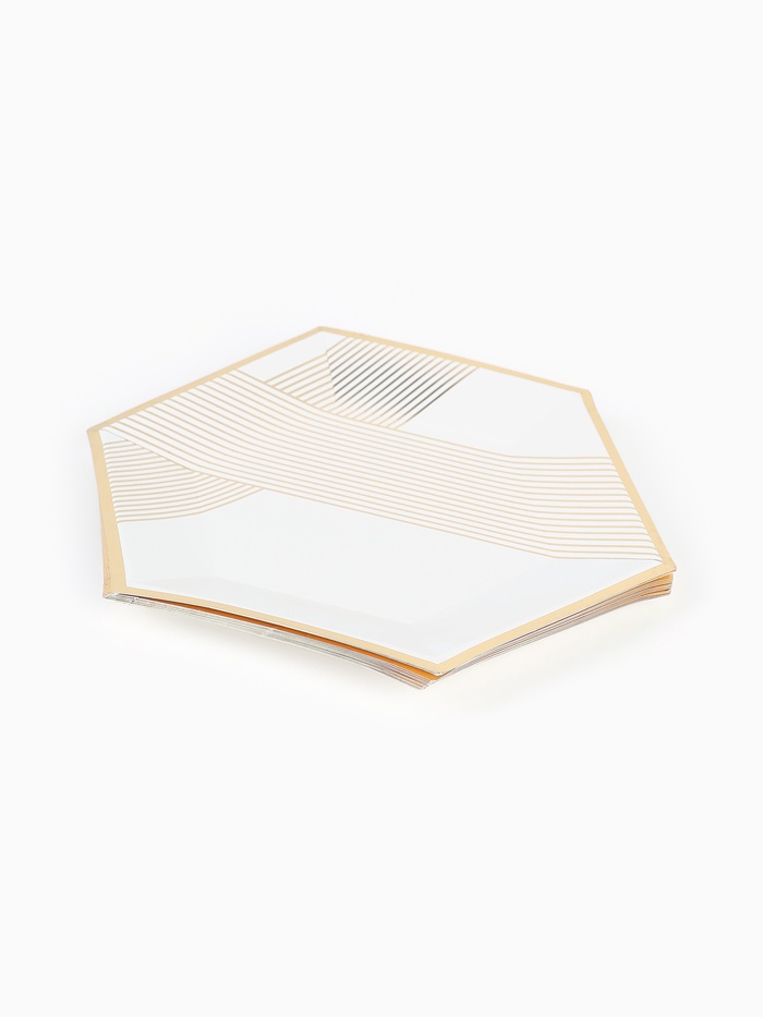 Посуда одноразовая бумажная на 12 персон, 24 предмета, бело-золотой цвет