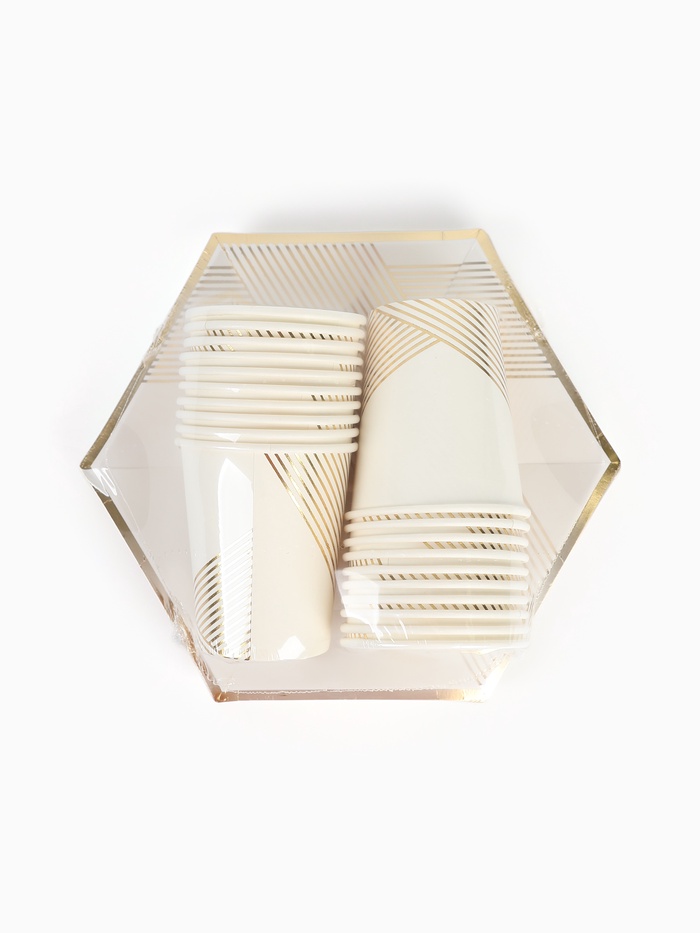 Посуда одноразовая бумажная на 20 персон, 40 предметов, бело-золотой цвет