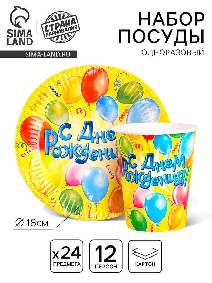 Одноразовая посуда «С днем рождения, шары», 12 персон