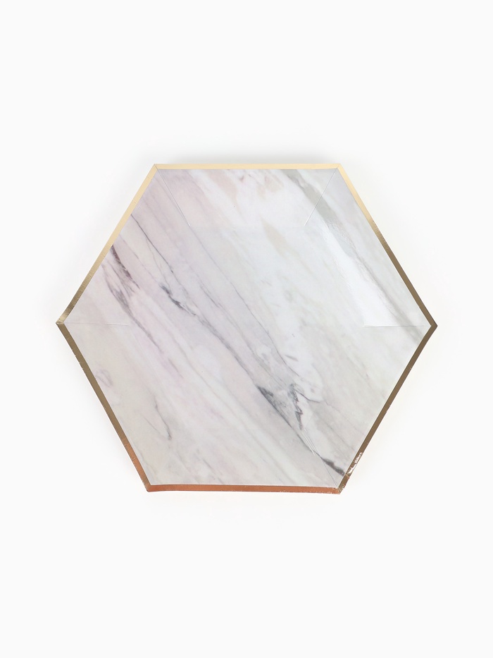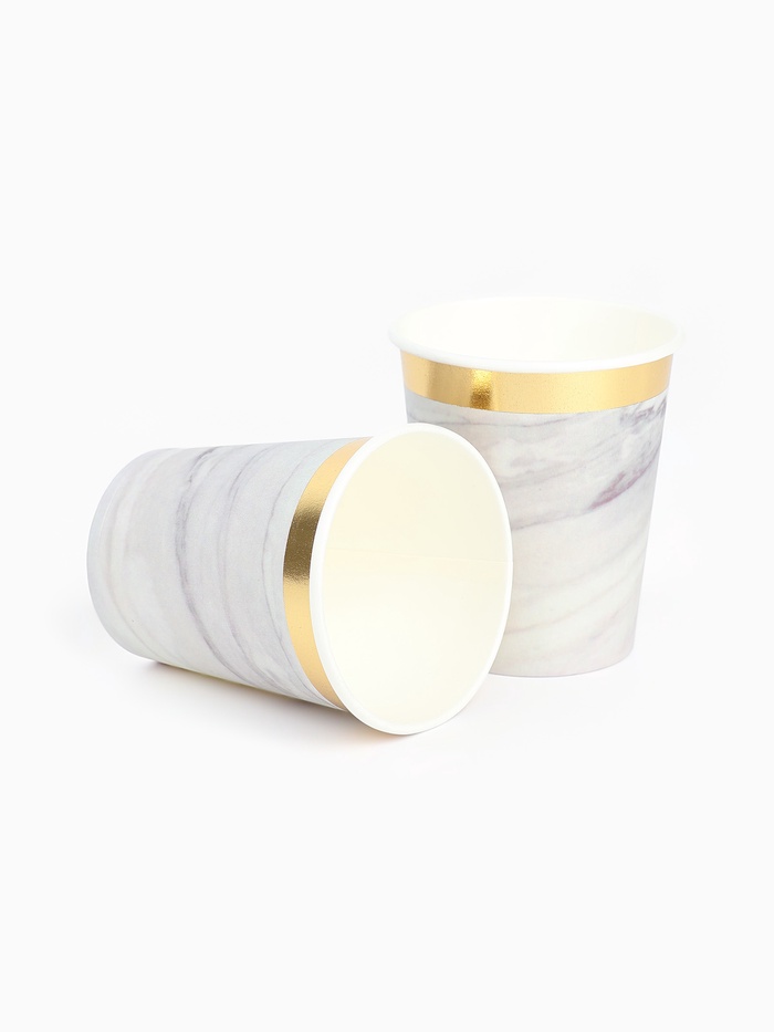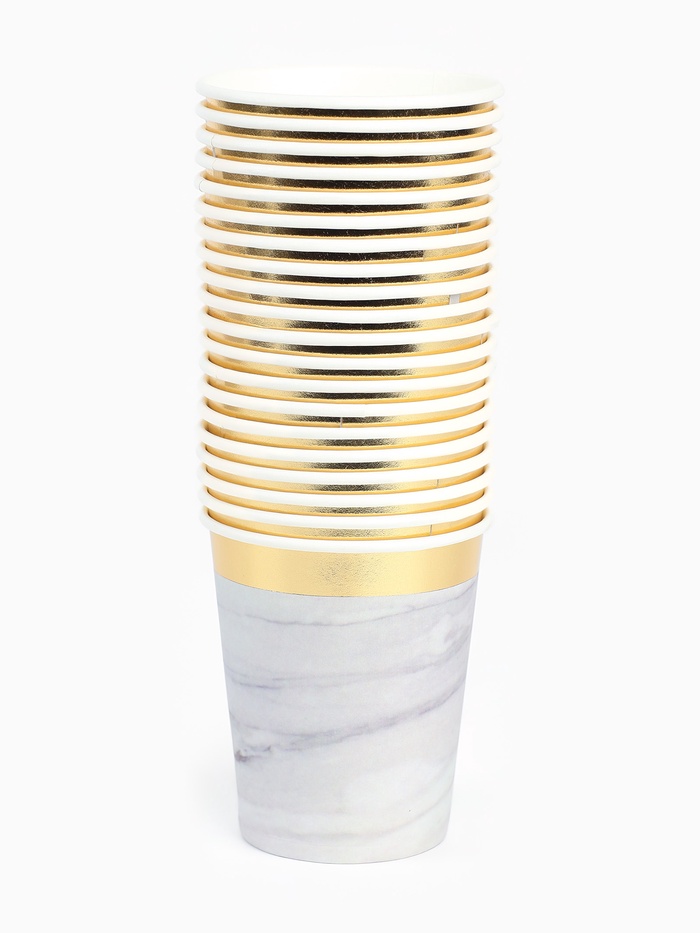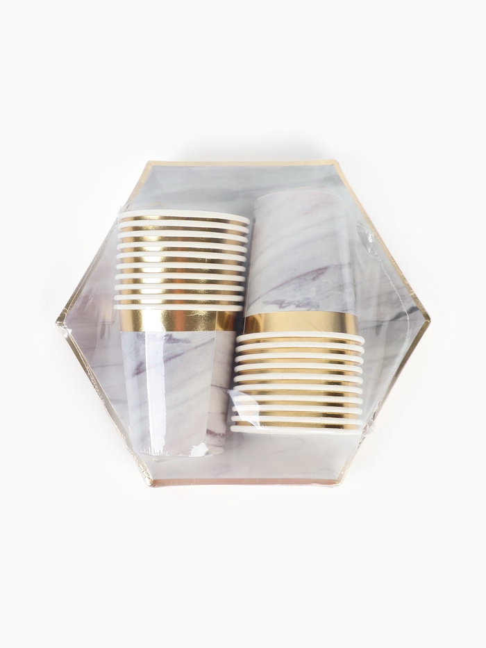 Посуда одноразовая бумажная на 20 персон, 40 предметов, мрамор белый