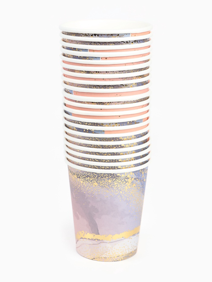 Посуда одноразовая бумажная на 20 персон, 40 предметов, мрамор розовый — Характеристики
