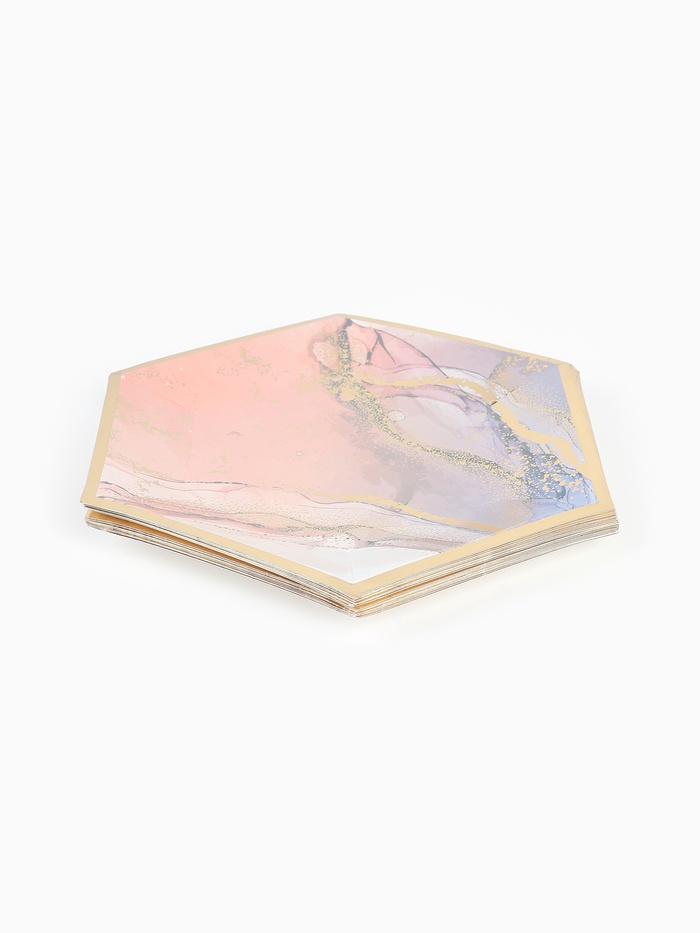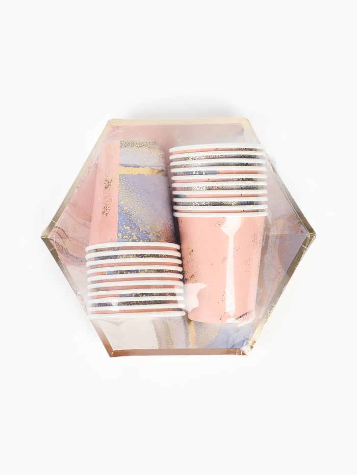 Посуда одноразовая бумажная на 20 персон, 40 предметов, мрамор розовый