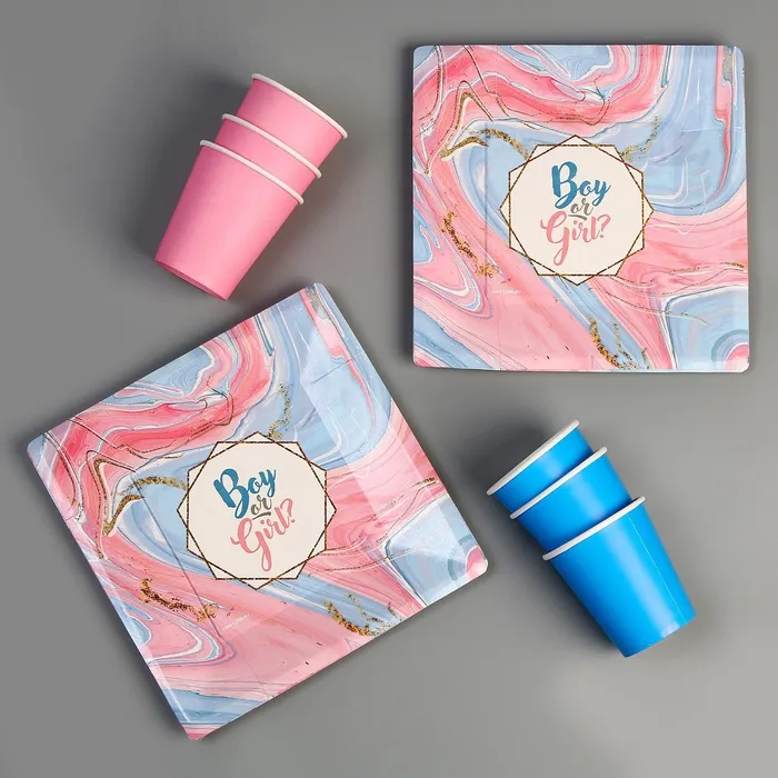 Посуда одноразовая бумажная на гендер-пати «Мальчик или девочка», стаканы 6 шт., тарелки 6 шт.