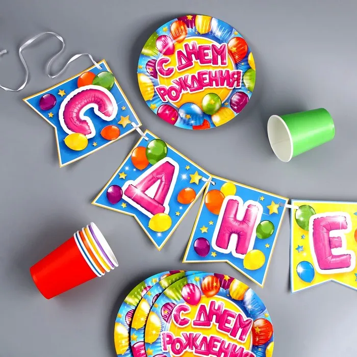 Представьте себе праздничный стол, украшенный яркой посудой с праздничным декором! Весь набор выполнен в красочном дизайне с изображением свечей, звезд и надписью "С днем рождения". Тарелки и стаканчики изготовлены из плотного картона, что гарантирует их прочность. После праздника вы просто выбросите ее, не тратя время на мытье. Этот набор идеально подойдет для праздничного застолья на день рождения, ведь он создаст атмосферу радости и веселья. Набор упакован в удобный пакет, что делает его идеальным вариантом для подарка.