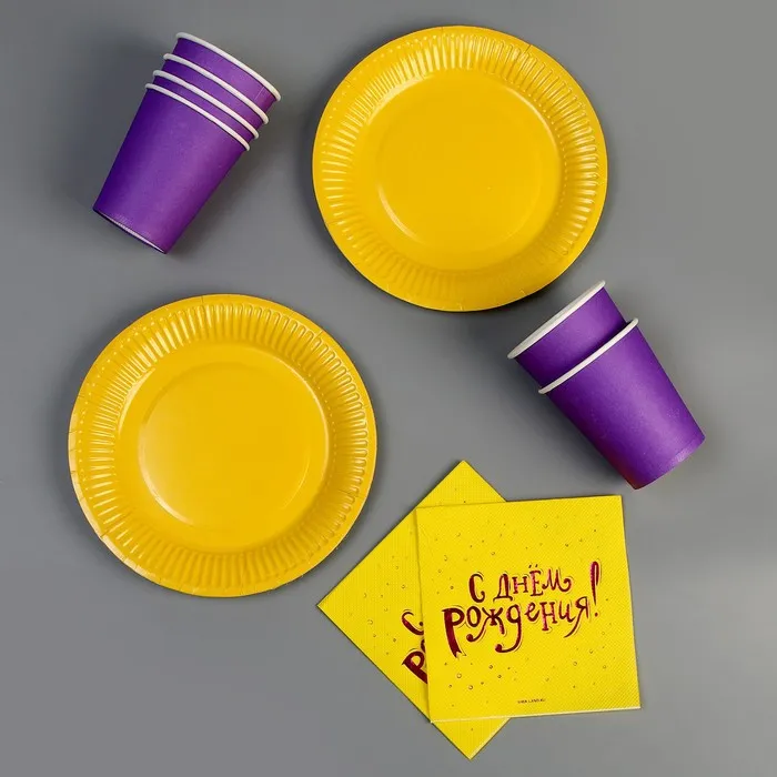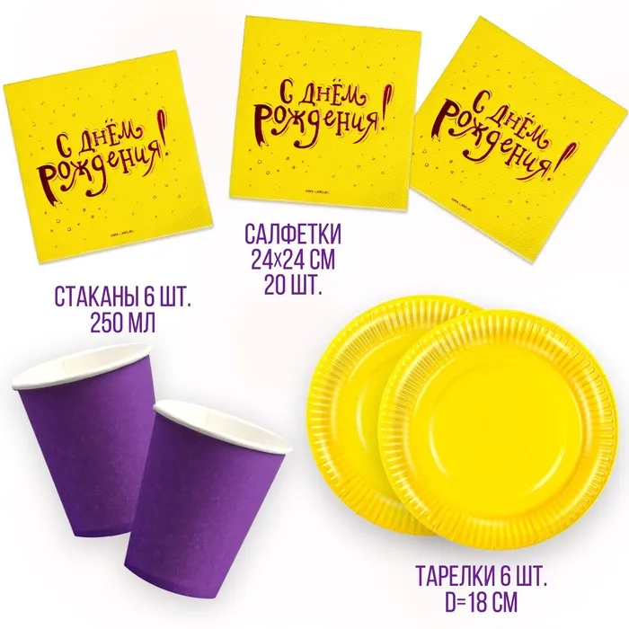 Посуда одноразовая бумажная «С днём рождения», салфетки 20 шт., стаканы 6 шт., тарелки 6 шт. — Характеристики