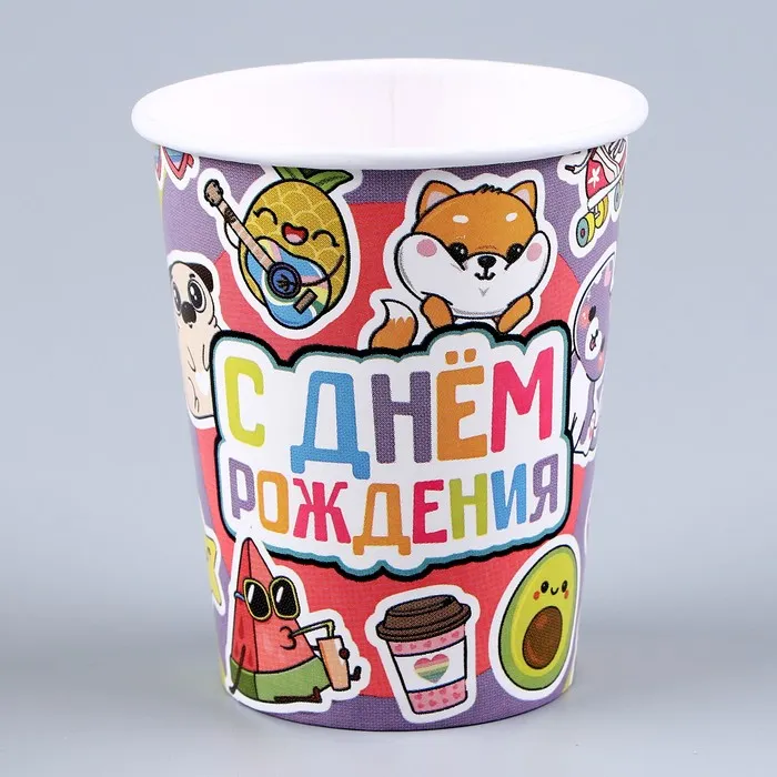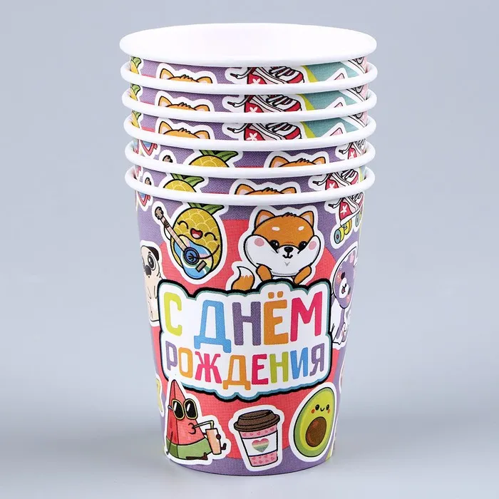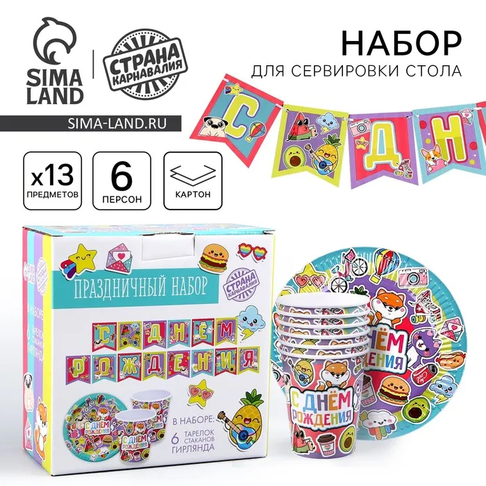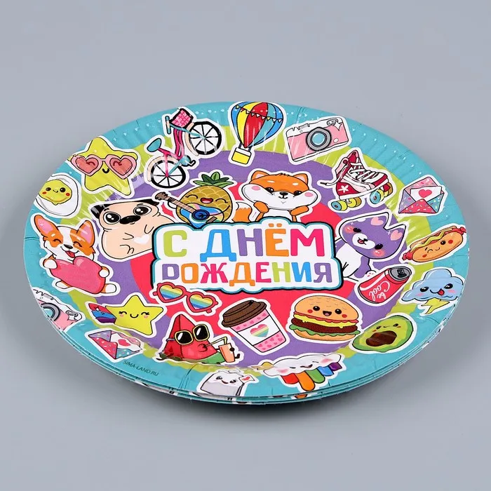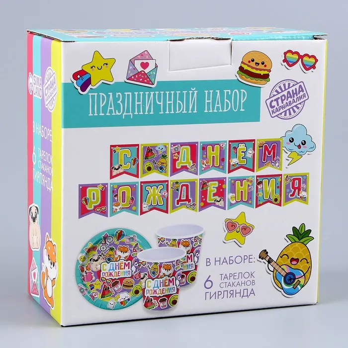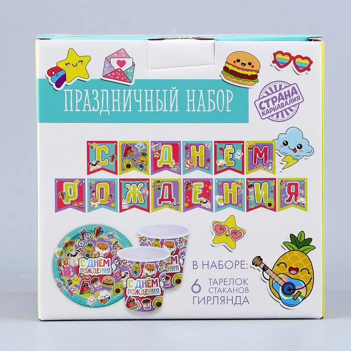 Посуда одноразовая бумажная «Стикеры», 6 тарелок, 6 стаканов, 1 гирлянда — Характеристики