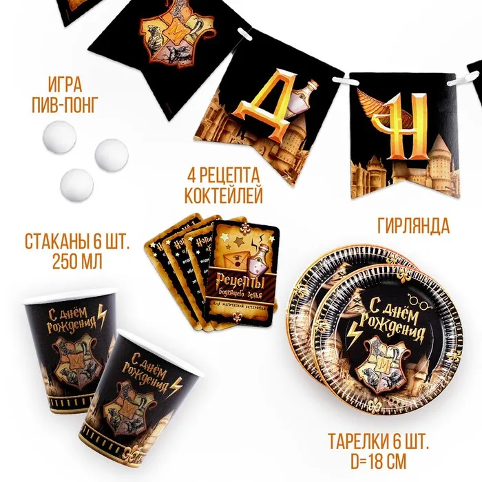 Представьте себе праздничный стол, украшенный яркой посудой с праздничным декором! Весь набор выполнен в красочном дизайне с изображением свечей, звезд и надписью "С днем рождения". Тарелки и стаканчики изготовлены из плотного картона, что гарантирует их прочность. После праздника вы просто выбросите ее, не тратя время на мытье. Этот набор идеально подойдет для праздничного застолья на день рождения, ведь он создаст атмосферу радости и веселья. Набор упакован в удобный пакет, что делает его идеальным вариантом для подарка.