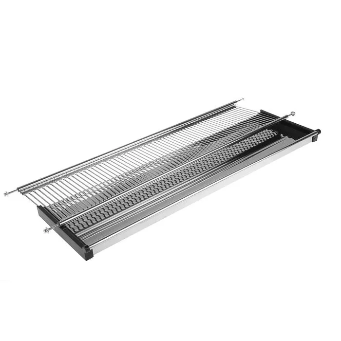 Набор устанавливается в кухонный гарнитур и состоит из 3 предметов: полок для чашек и тарелок, а также поддона для воды, стекающей с посуды.