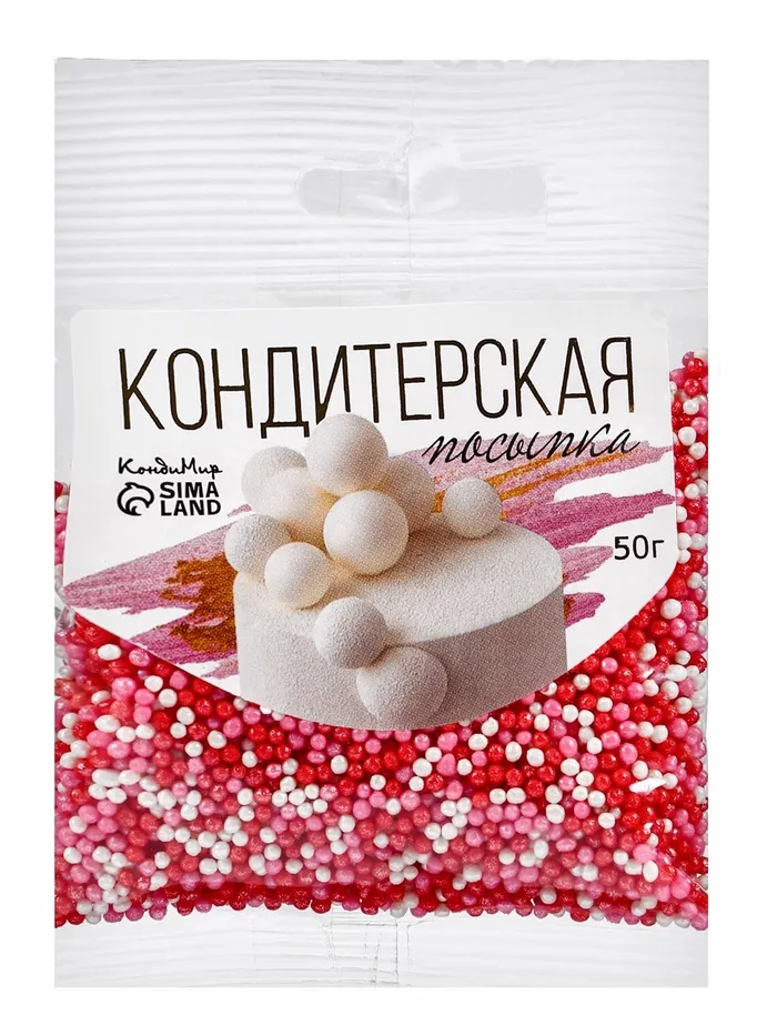 Посыпка кондитерская с мягким центром «Бисер» розовый, красный, серебро, 50 г — Характеристики